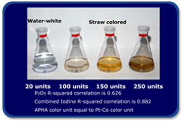 Some fluorosilicic acid (FSA) is called "water-white" when it appears virtually colorless. However, most FSA has some coloration that results from other impurities. LCI, a distributor of FSA, conducted testing in 2007 and found an increase in the American Public Health Association (APHA) color units (measured as Pt-Co) in FSA due to increases in phosphoric acid concentration and iodine concentration. Fluorosilicic acid (FSA) used in water fluoridation has an effective dilution of more than 250,000 times (to get 0.7 mg/L of fluoride in finished water). At this level of dilution, the color in finished drinking water is below detection level.