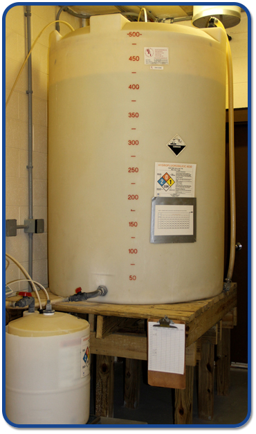 Even with good containment, it is possible for a release to occur (broken pipe, etc.). You should keep on hand spill control pillows or dams that adsorb acid to keep liquid from spreading in the event of a spill. Spill kits are commercially available and many utilities have them. Conduct an annual inspection of your spill kits to ensure that the contents are up to date. If there are multiple chemicals in the tank form, clearly label all spill kits as to their application.