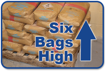 Limit stacks to six bags high and make sure they’re protected from the elements. Additives cake when compressed and exposed to moisture. Do not overbuy as the additives will slowly adsorb moisture from the air and hydrate, resulting in “fish-eyes” that may never be successfully dissolved. Limit purchases to a maximum 6-month supply.
